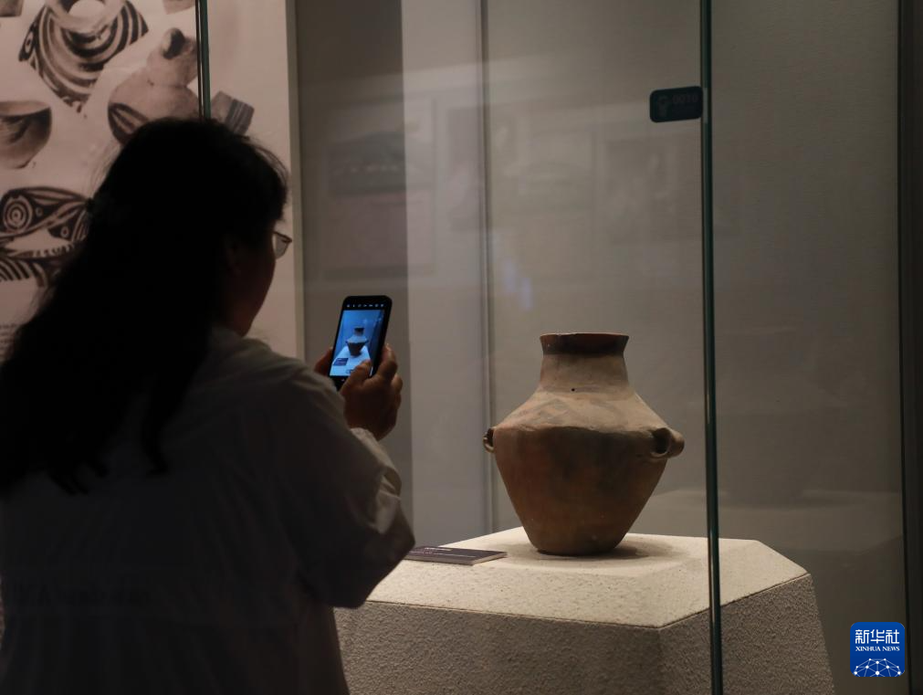 这是9月26日拍摄的安特生返还文物马家窑双鼻彩陶罐。