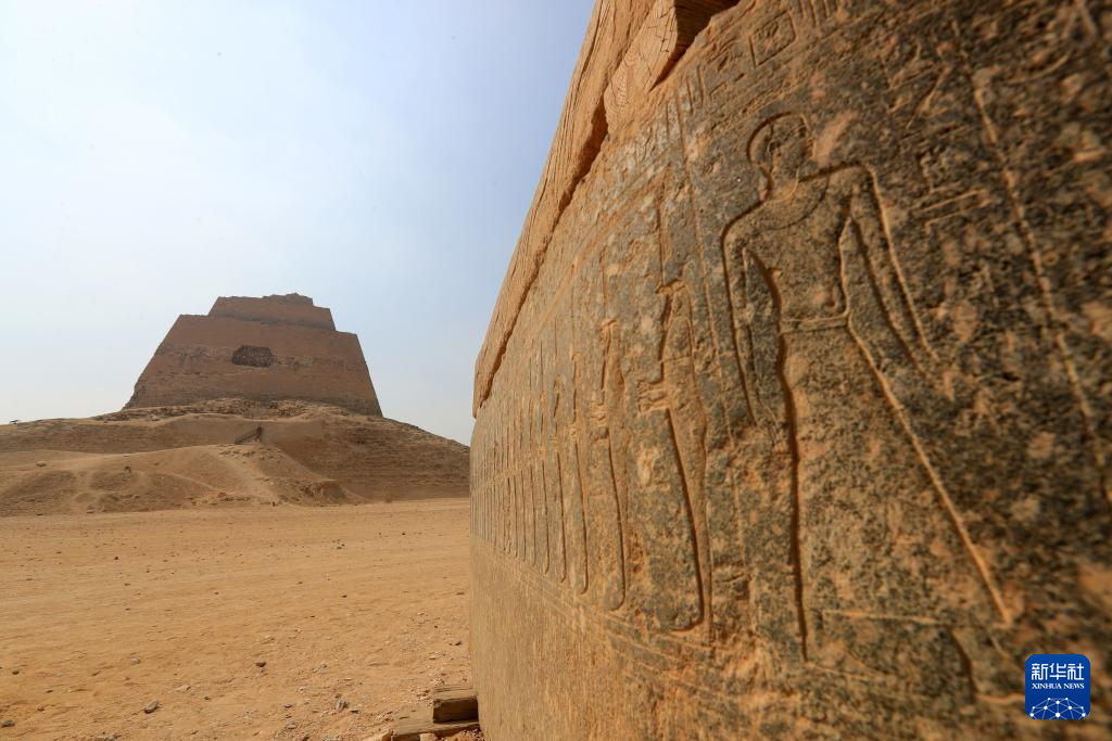 这是10月16日在位于埃及贝尼苏韦夫省的美杜姆金字塔附近拍摄的石棺局部。