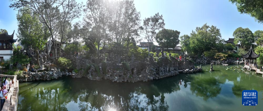 游人在狮子林参观游览(10月23日摄,无人机照片)。