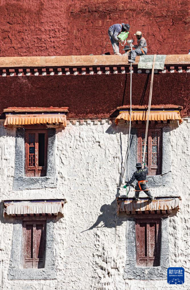 10月31日拍摄的布达拉宫年度外墙粉刷工作现场。