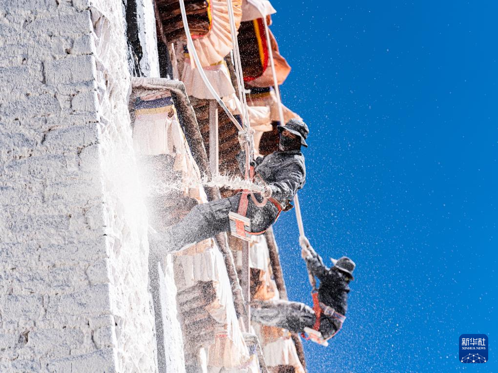 近期,西藏布达拉宫开始进行一年一度的外墙粉刷工作。布达拉宫管理处的工作人员和志愿者一起,将牛奶、蜂蜜、白糖、红糖、藏红花等粉刷原料与各色石灰混合后,调出白色、红色、黄色的专用涂料,再喷洒到布达拉宫外墙上,因此布达拉宫也被人们称为“甜蜜的宫殿”。独特配方的涂料更具黏性而且不易脱落,从而更好地保护古建墙体。