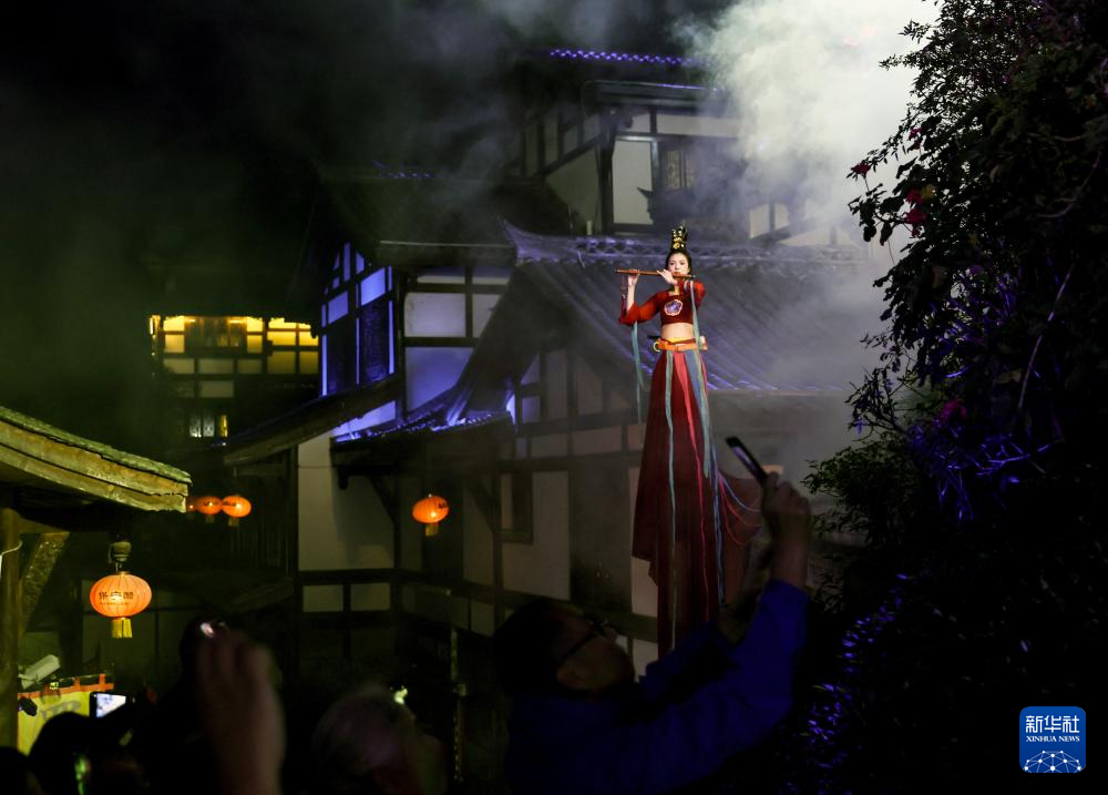 11月5日拍摄的实景演出《蜀道盛世》中的“亮花鞋”。