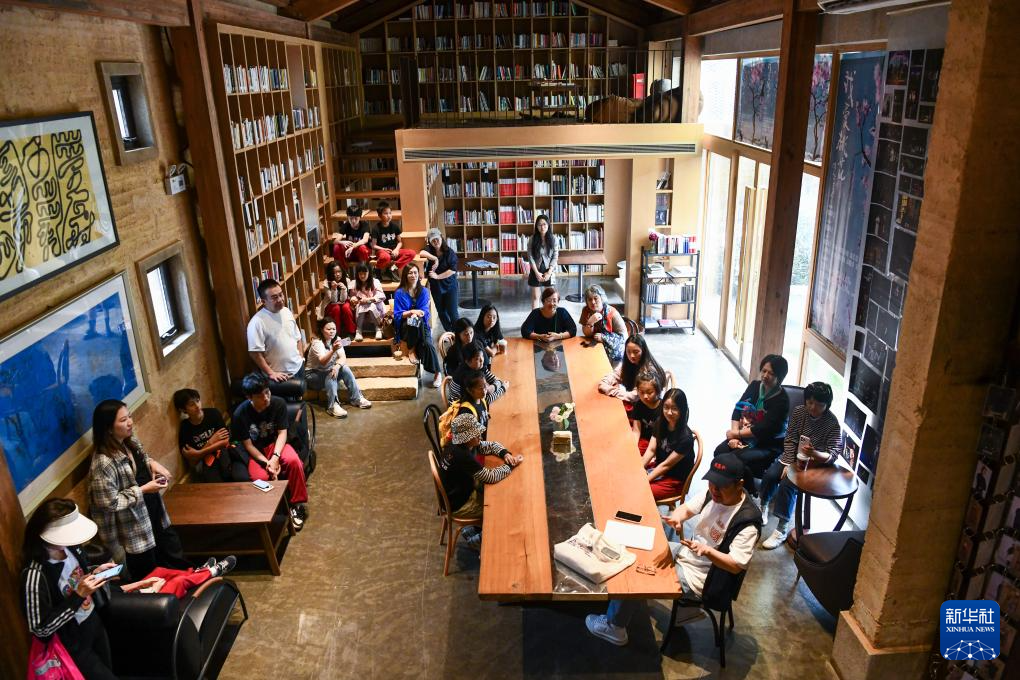 在长守戏剧谷,演员、导演张国立(中)与爱好戏剧的孩子们交流(11月9日摄)。