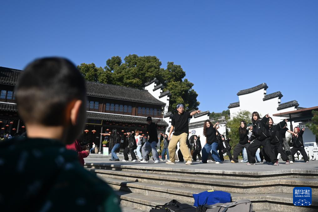 当日,在浙江省湖州市南浔区参加2024年中国大学生街舞锦标赛的学生代表受邀来到南浔古镇。学生们以古镇为舞台,即兴表演多场激情四溢的街头舞蹈,为游客带来独特的体验。