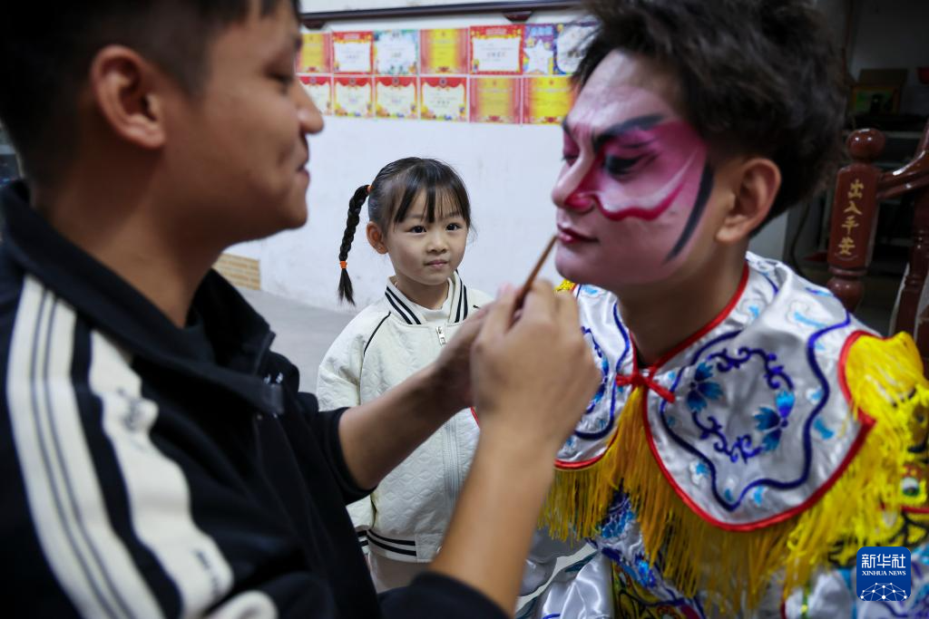 12月9日,庄恩琪在活动开始前看爸爸化妆。