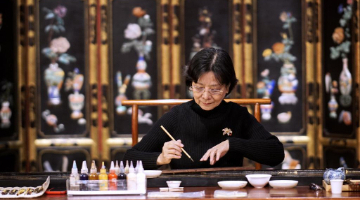 1957年出生的胡昕从事金漆镶嵌工艺已有48年,她潜心研究,在工艺技法和艺术风格上实现了新的突破,其创作的金漆镶嵌作品富丽华贵、庄重典雅、纹饰精美。2015年,胡昕所在的北京金漆镶嵌有限责任公司(原北京金漆镶嵌厂)与北京市工艺美术高级技工学校签订了“校企合作”协议,开办了金漆镶嵌专业定向班,建立了“金漆镶嵌人才培养实训基地”。胡昕作为客座教师,每周都会去现场授课,为企业培养新一代技术人才。