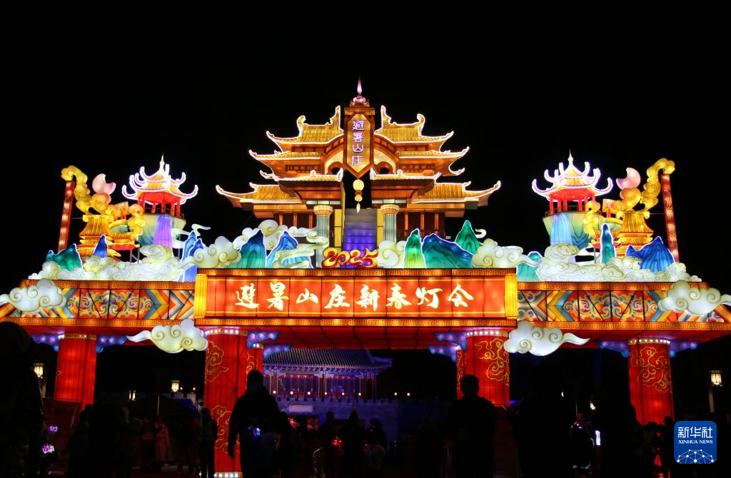1月18日,游客在河北承德避暑山庄赏花灯。