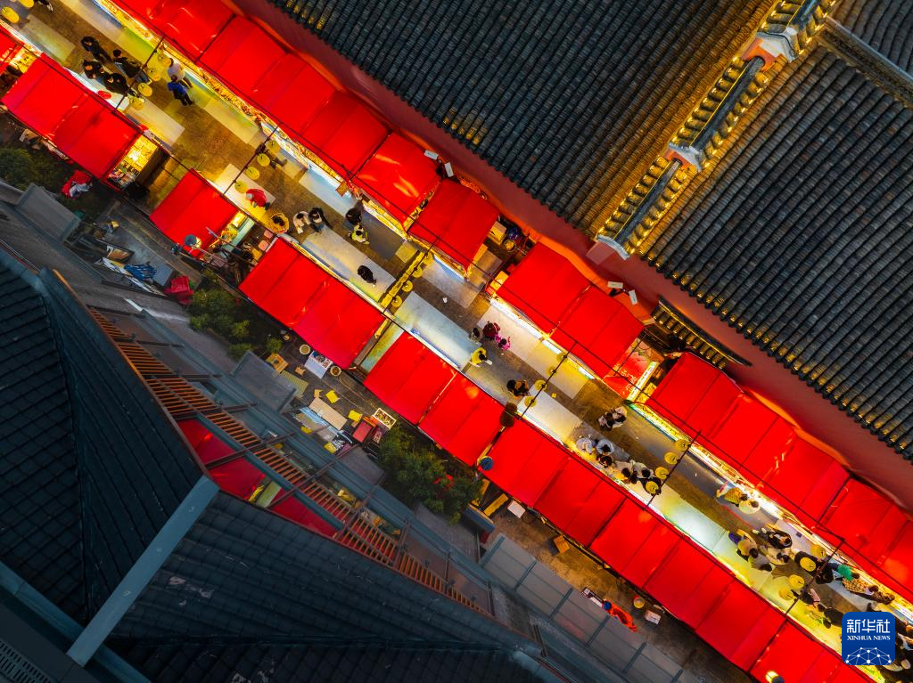 1月18日拍摄的浙江省宁波市城隍庙夜市(无人机照片)。
