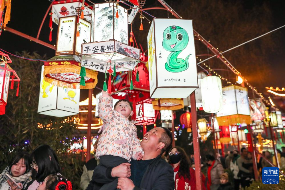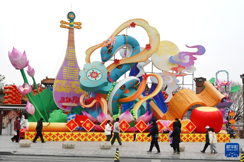 蛇年春节将至,各地张灯结彩,人们参加各种喜庆活动,欢欢喜喜迎新春。