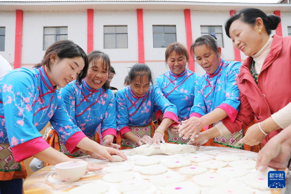 1月22日,湖南省永州市道县梅花镇贵头村村民在做糍粑。