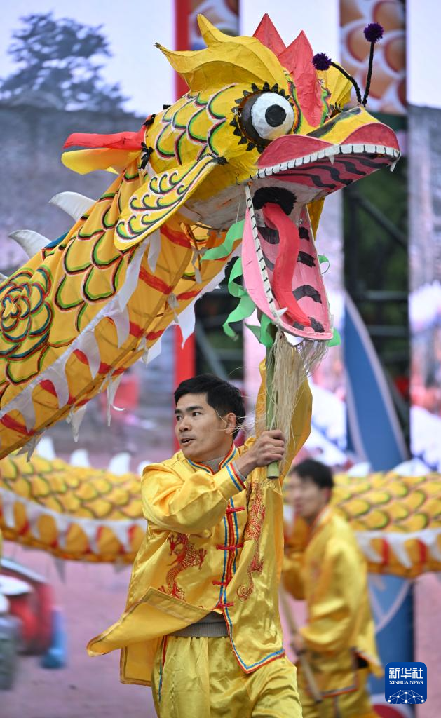 2月12日,来自泸县嘉明镇的龙舞队在表演。