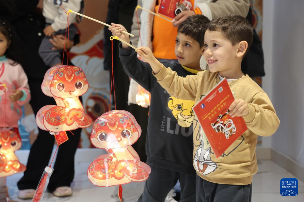 当日,元宵节庆祝活动在拉巴特中国文化中心举行。摩洛哥民众体验蛇形灯笼制作,庆祝元宵节。