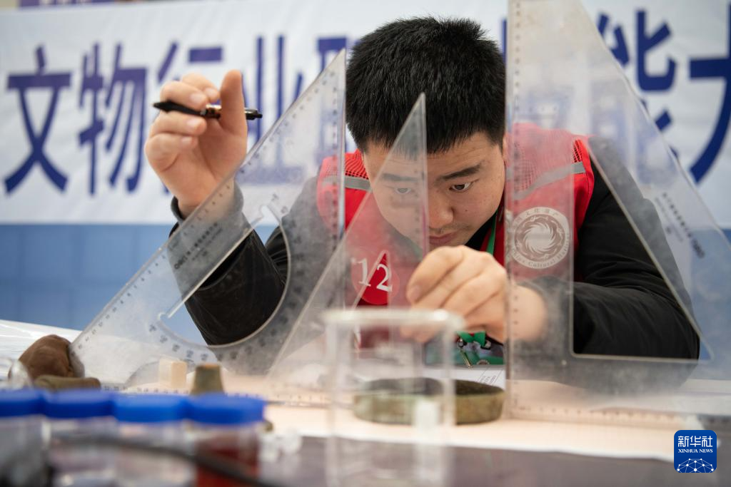 3月6日,参赛选手在参加金属文物修复师项目比赛。