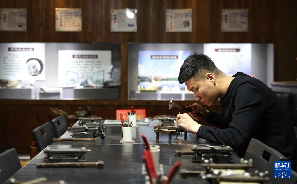 3月11日,孙朋对加热后的银料进行锻打塑型。