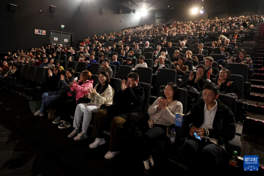 3月26日,在比利时布鲁塞尔,观众在《哪吒之魔童闹海》首映活动上观影。