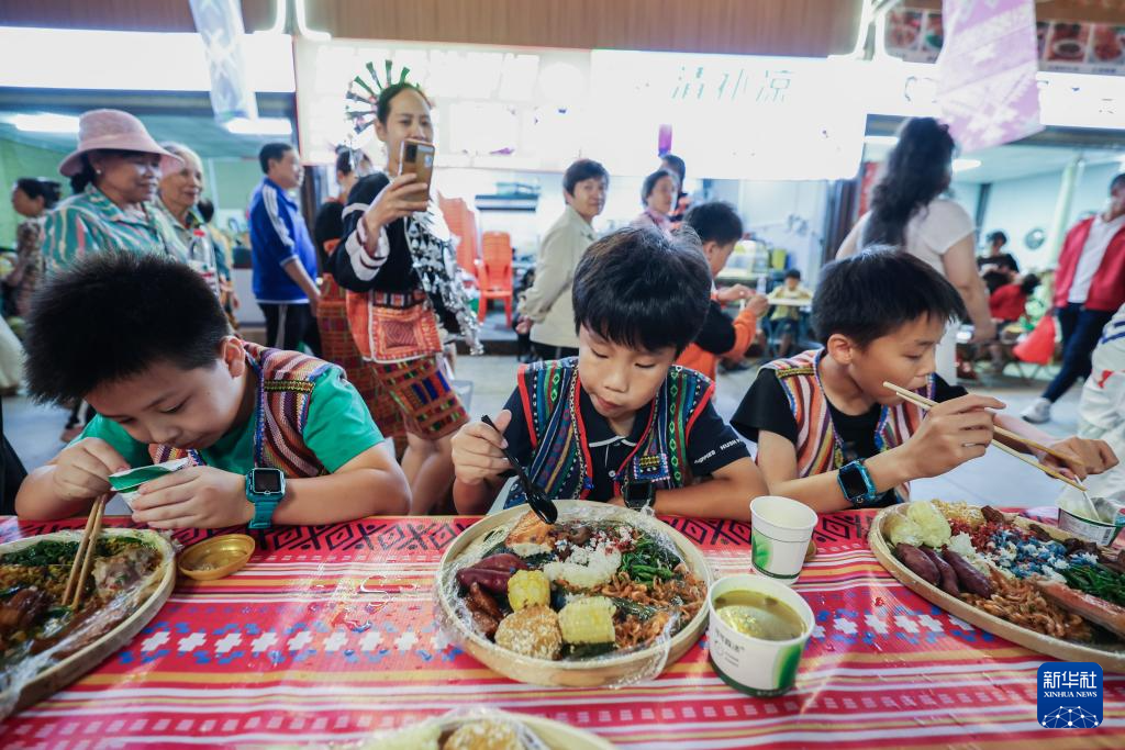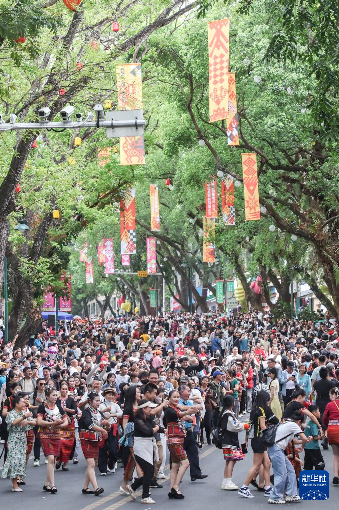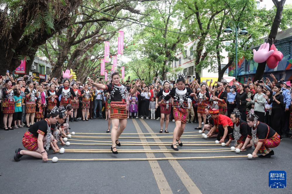 当日,2025海南黎族苗族传统节日“三月三”主会场活动在海南五指山市举行。当地举办了形式多样的民俗活动庆祝佳节,游客可以在五指山市观看“村秀”、竹竿舞等表演,还可以体验长桌宴特色美食。