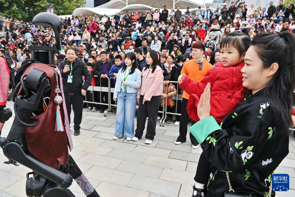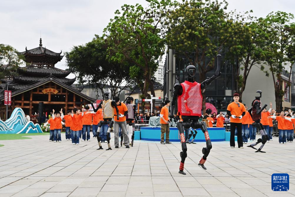 开幕式上,“科技范儿”成为关键词。除了机器人“刘三姐”,在蛇年春晚上手持花绢扭秧歌“出圈”的同款人形机器人也来到广西,脱下花棉袄,穿上壮锦马甲,和街舞少年们共舞。