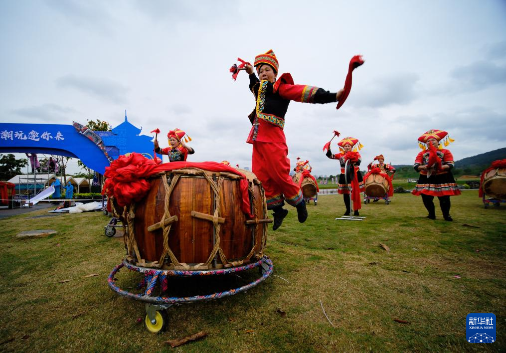 人们在广西南宁民生广场表演节目,迎接即将到来的“三月三”佳节(3月27日摄)。新华社记者 周华 摄