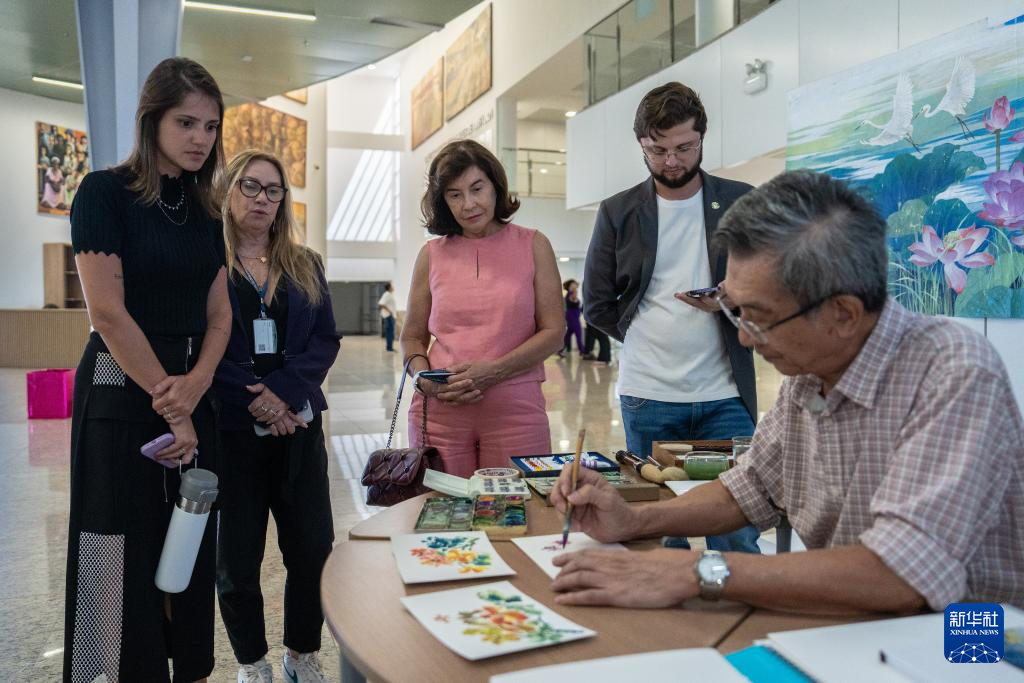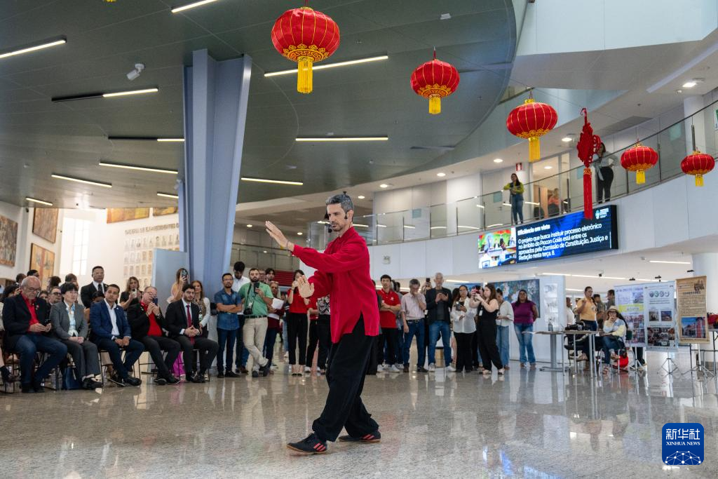 当日,中国传统文化主题活动在巴西戈亚斯州议会大楼内展开,活动涵盖中医诊疗体验、太极拳、书法、绘画、健身龙、双节棍等内容,吸引众多民众参与。