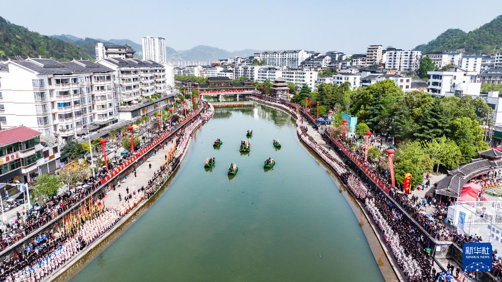 4月13日,当地群众参加苗歌对唱活动(无人机照片)。