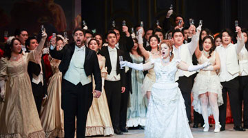 4月12日,在西双版纳傣族自治州景洪市,演员在傣历新年节(2025年泼水节)文艺晚会上表演。