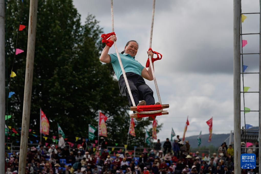 这是4月13日拍摄的三月街民族节秋千比赛现场。