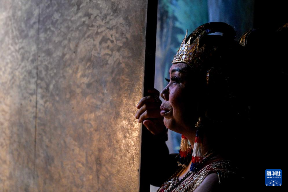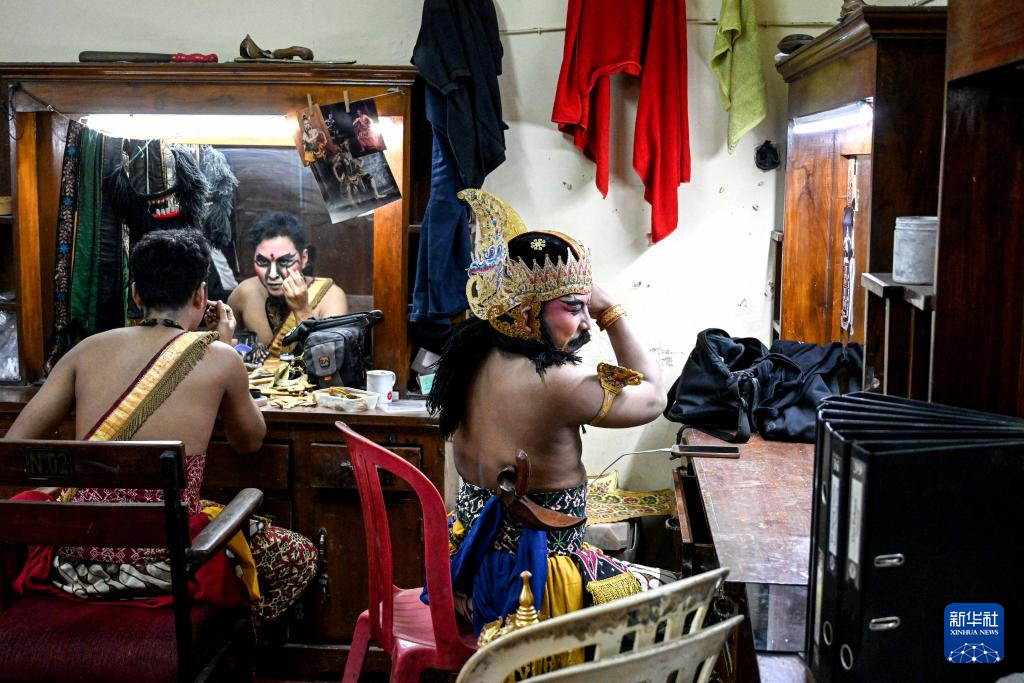 2024年12月20日,在印度尼西亚梭罗,哇扬人戏演员准备上台。