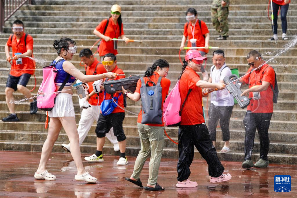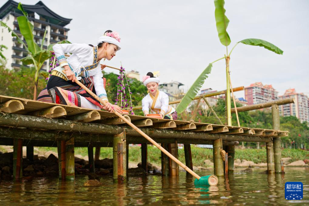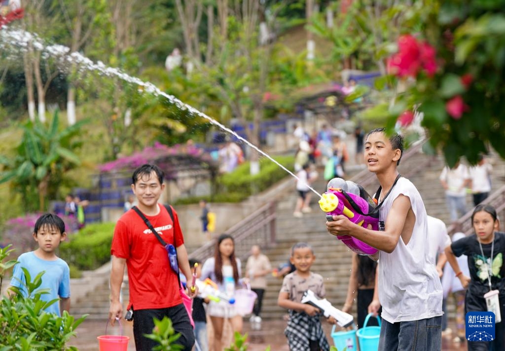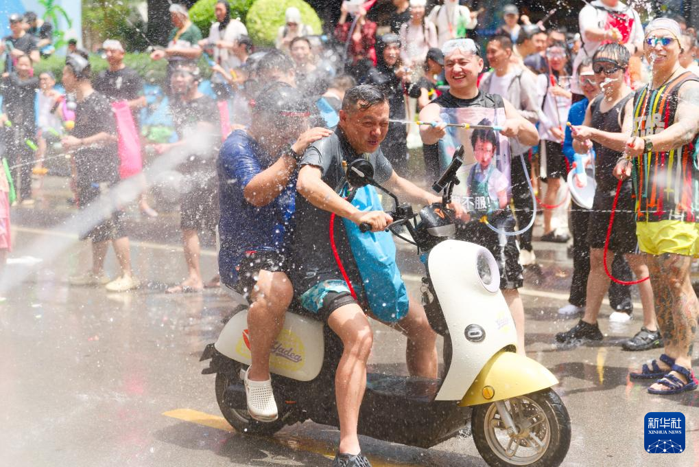 当日,云南多地举行泼水节活动,各族群众和游客用相互泼水的方式互送祝福,庆祝泼水节。