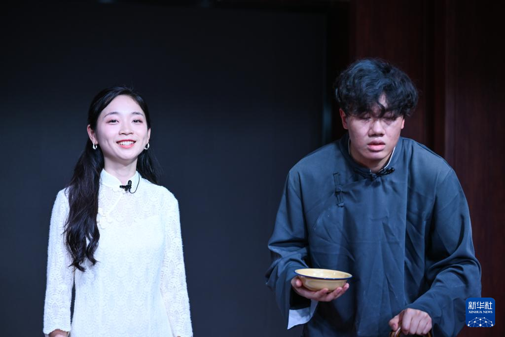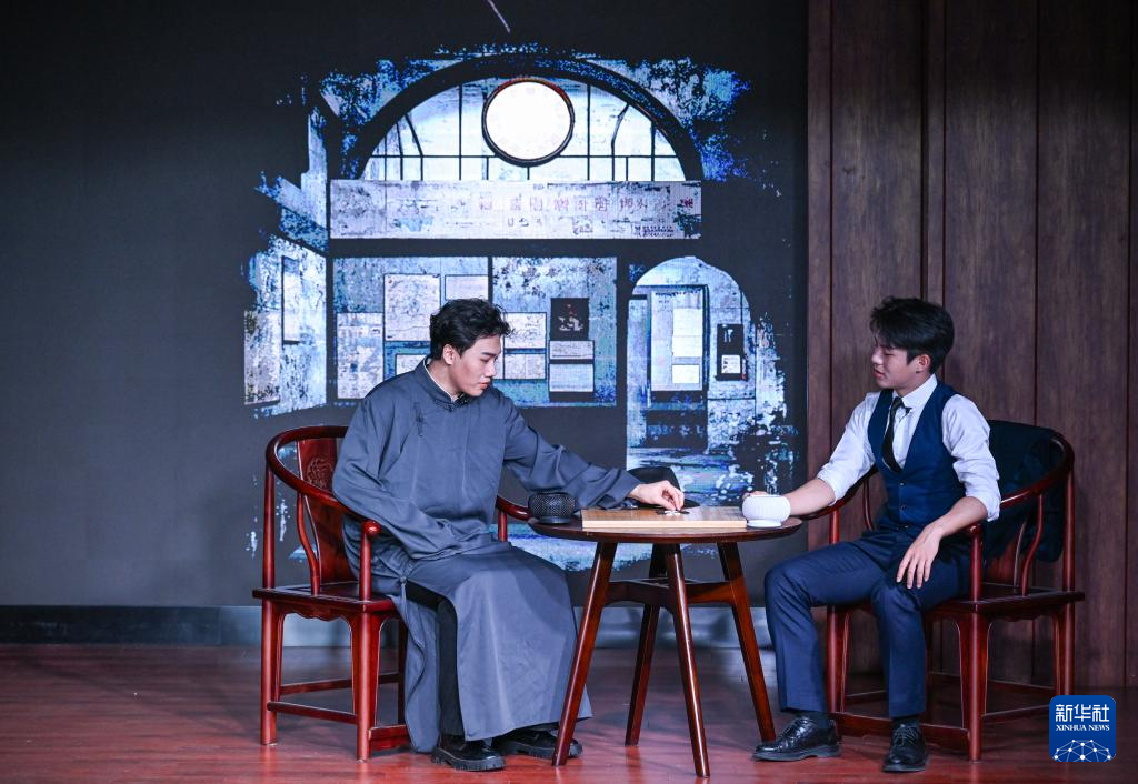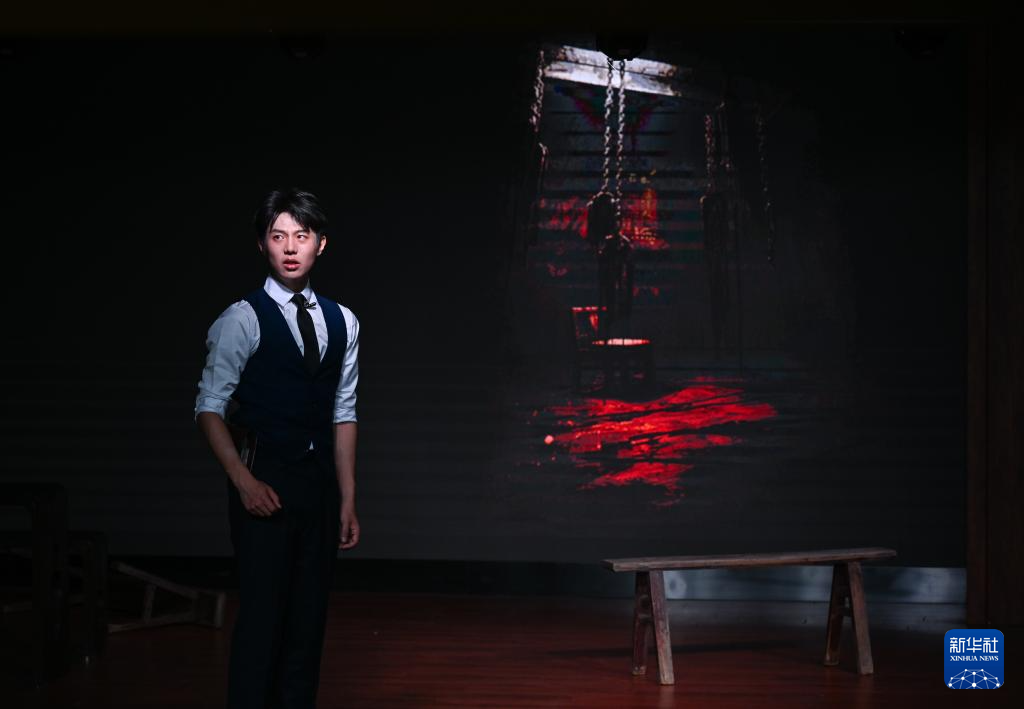 4月16日,在重庆市沙坪坝区文化馆,演员表演话剧《青山见》。