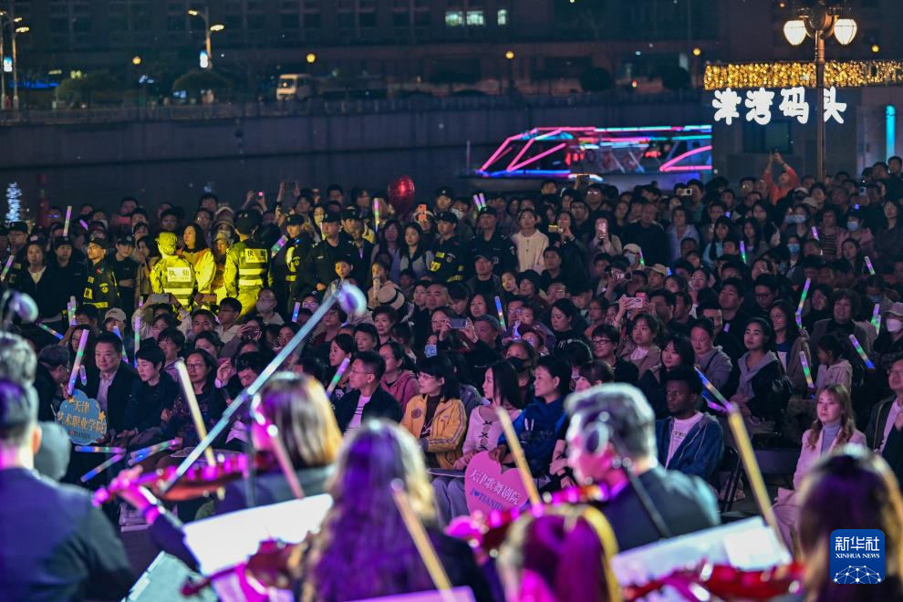 4月19日晚,“‘桥’见海河,邂逅浪漫”2025桥边音乐汇首场演出在天津津湾广场亲水平台启幕。
