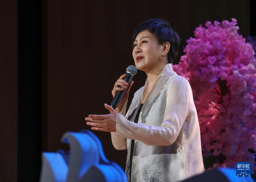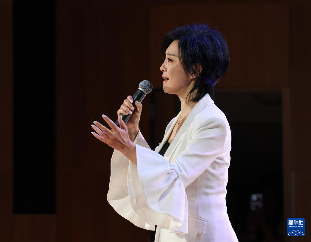 4月23日,张凯丽在朗诵《卜算子·我住长江头》。