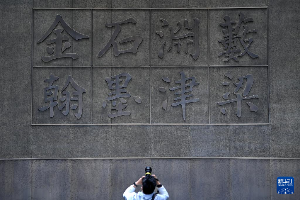 5月12日,游客在改扩建后的西安碑林博物馆北区场馆参观拍摄。