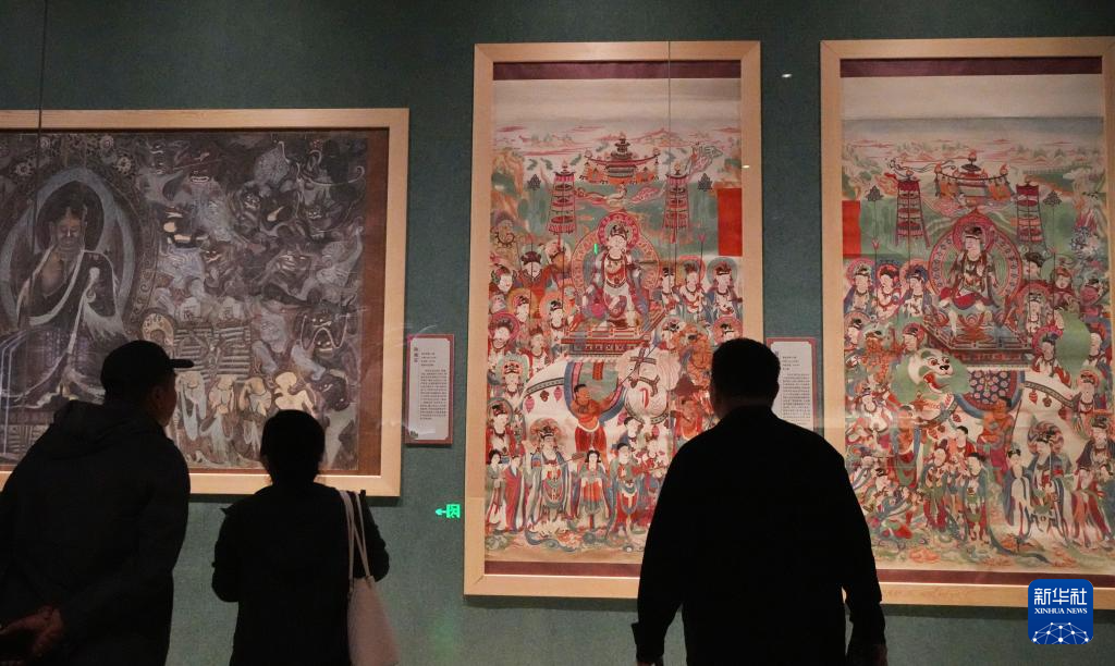 5月18日,游客在甘肃省敦煌市博物馆参观。