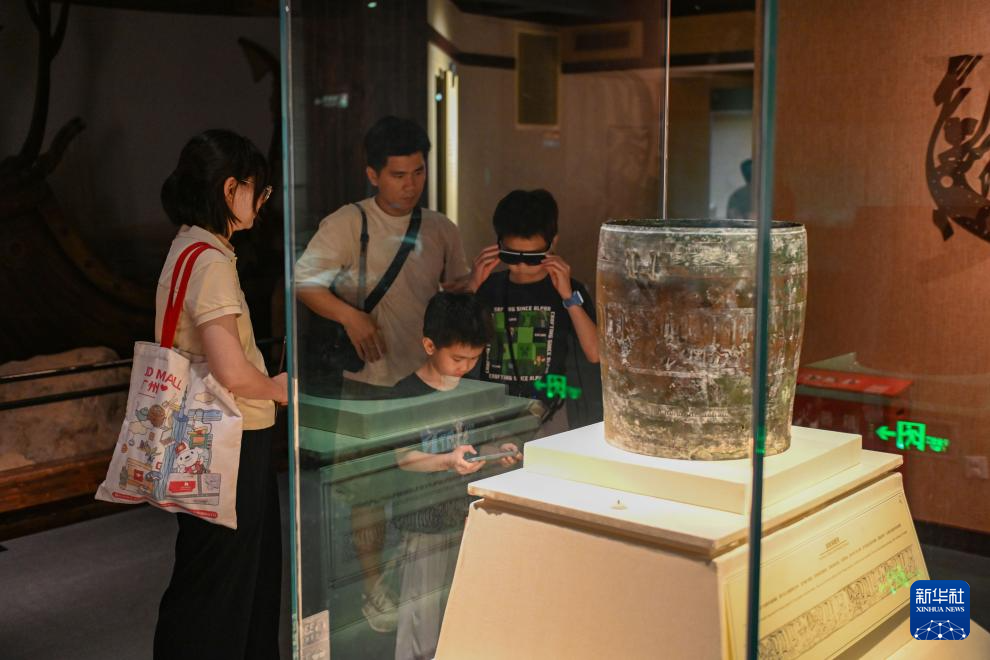 5月18日,参观者在广州南越王博物院(王墓展区)参观。