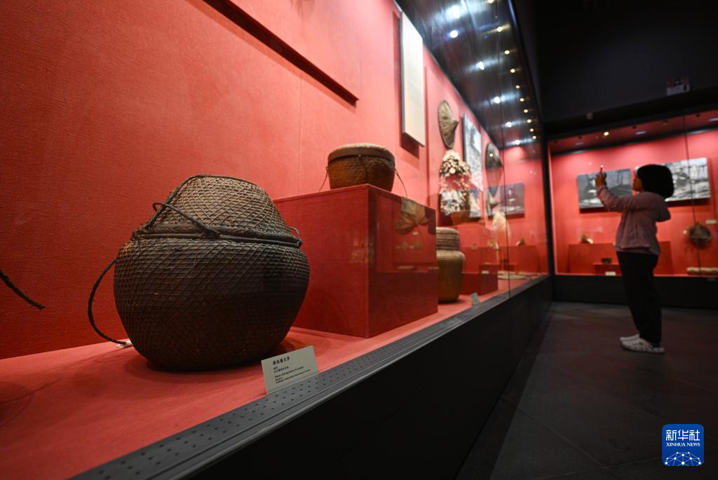 5月16日在位于海南五指山的海南省民族博物馆拍摄的黎族藤衣箩。