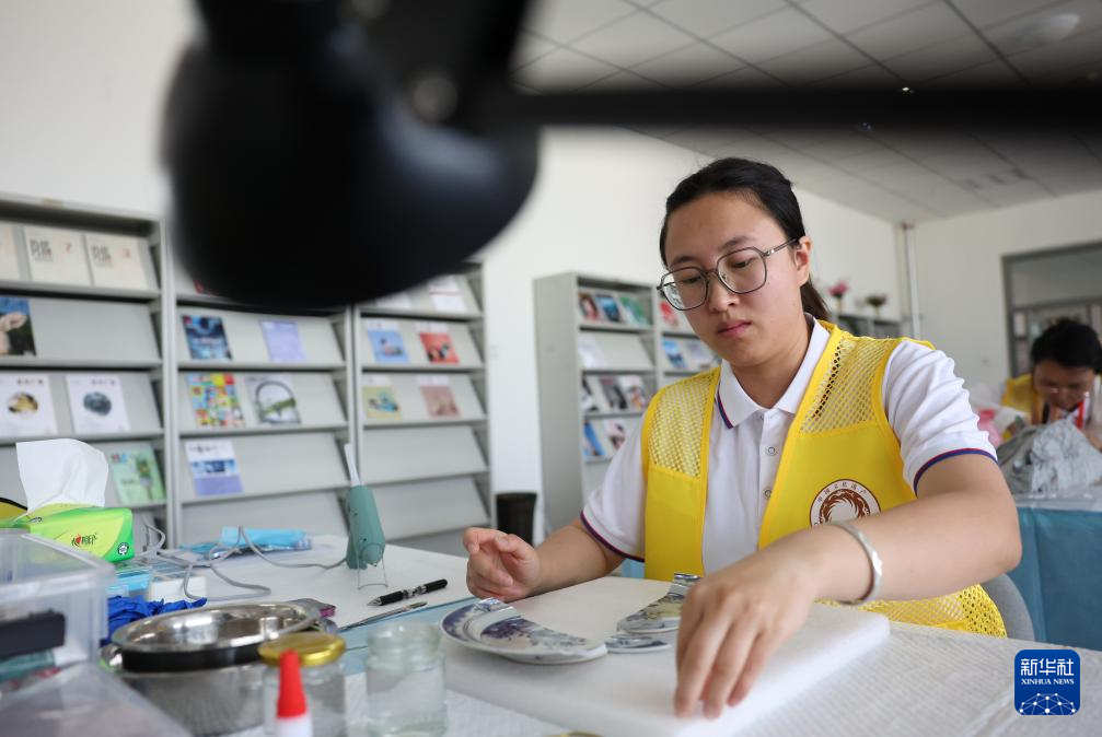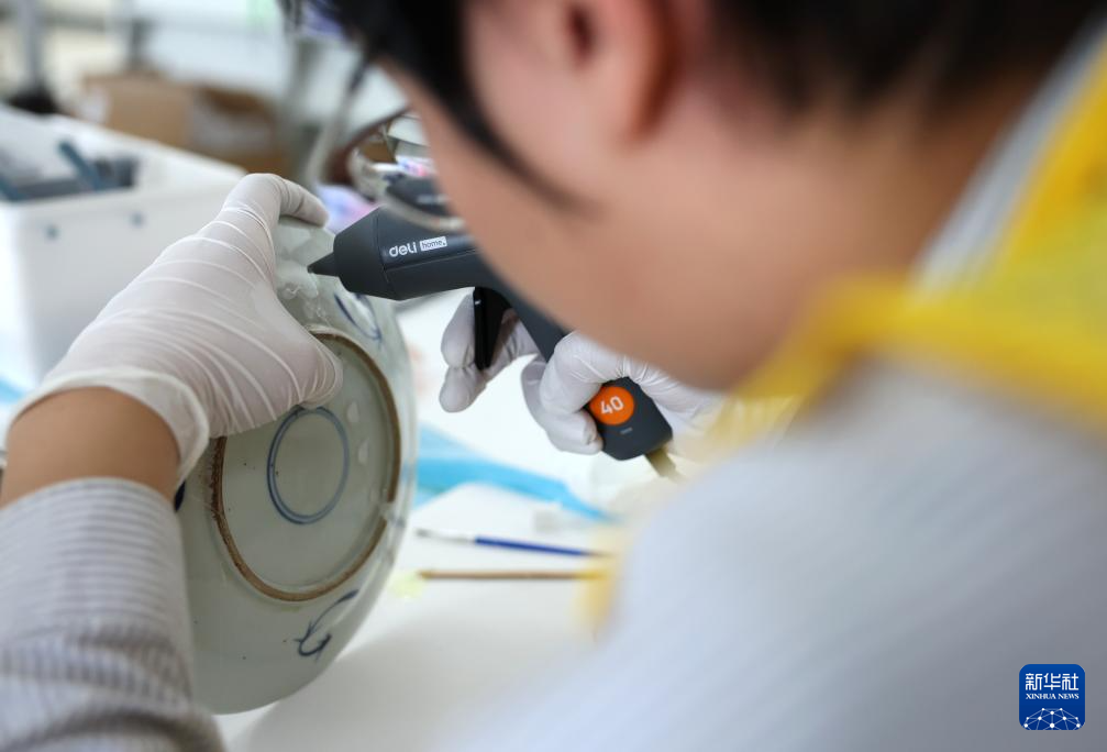 5月22日,来自宁夏回族自治区博物馆的参赛选手李琦在陶瓷文物修复比赛中。