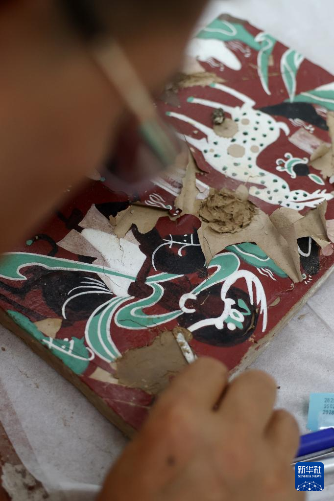 5月22日,来自敦煌研究院的参赛选手杨韬在壁画文物修复比赛中。