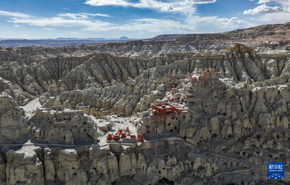 今年77岁的仁增旺扎家住西藏阿里地区札达县东嘎村皮央组。他的家与宏伟壮观的皮央石窟仅咫尺之遥,民居依偎在高耸的石窟群之下,形成了强烈的视觉落差。皮央石窟群与两公里外的东嘎扎西曲林寺遗址一起组成了西藏最大的佛教石窟遗址——皮央和东嘎石窟遗址。