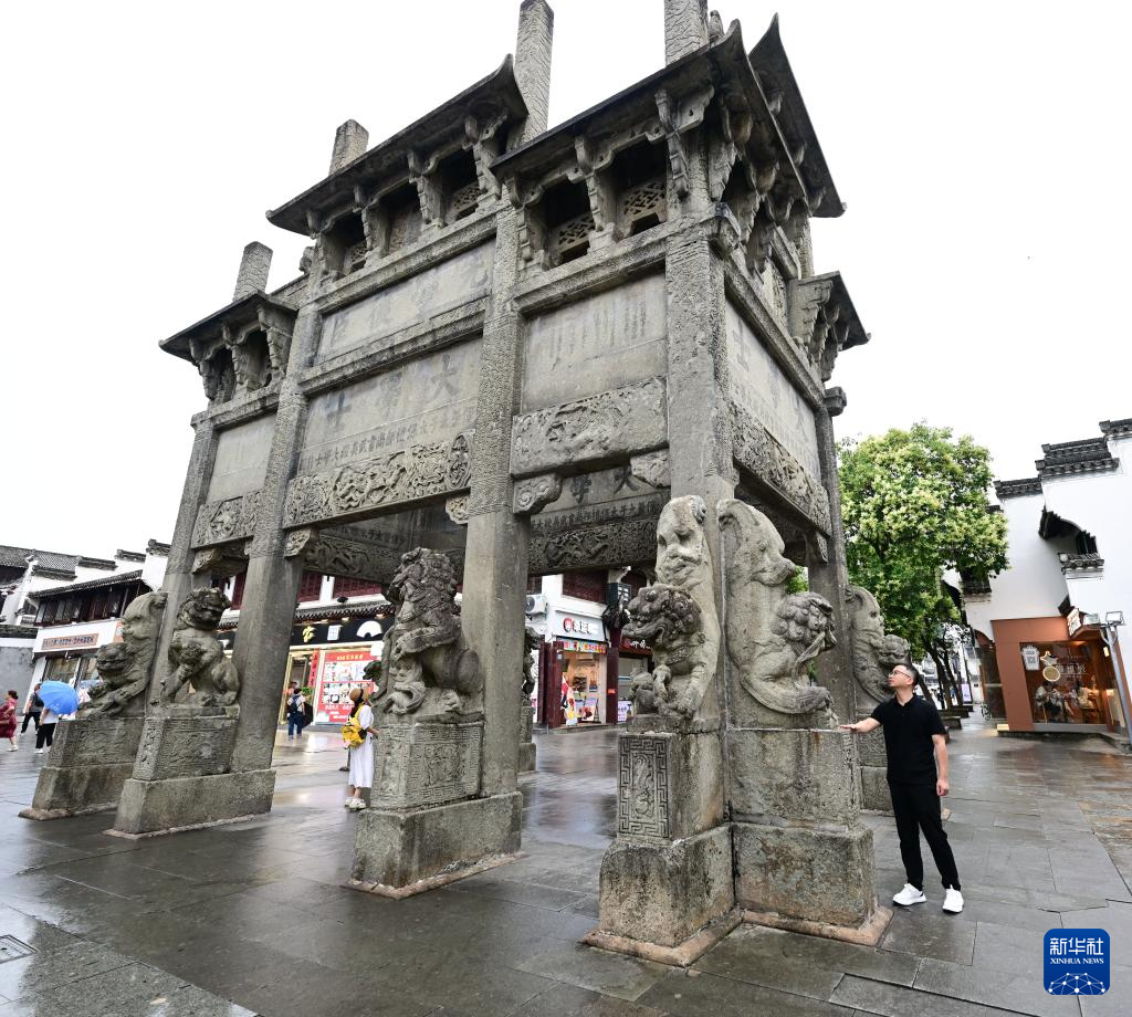 6月19日,周虎在位于歙县的全国重点文物保护单位许国石坊巡查。