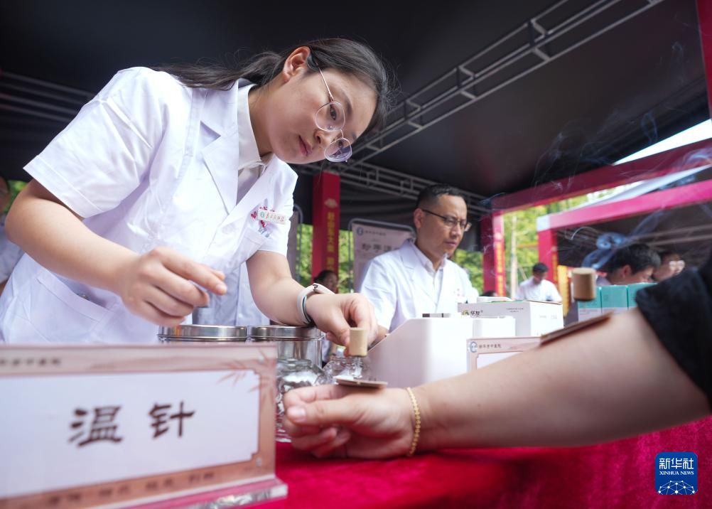 6月28日,医生在“黄河大集”中医养生市集上为顾客艾灸。