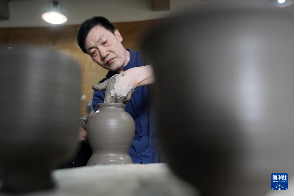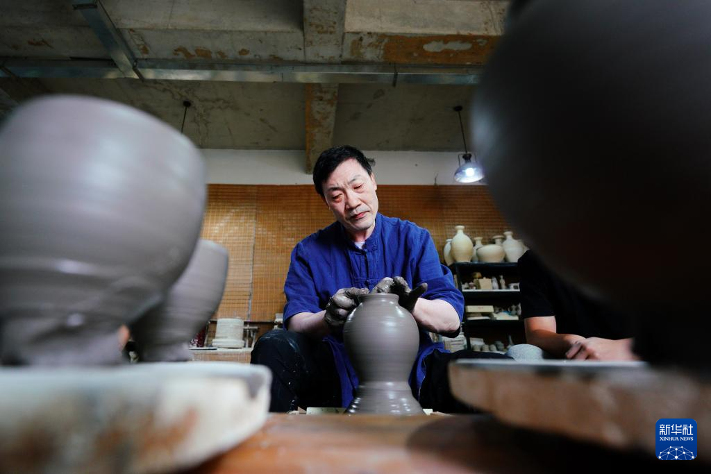 6月28日,在河北省临城县邢窑文化博览园,张志忠进行邢白瓷拉坯作业。
