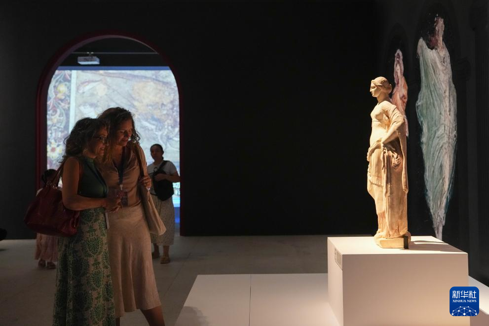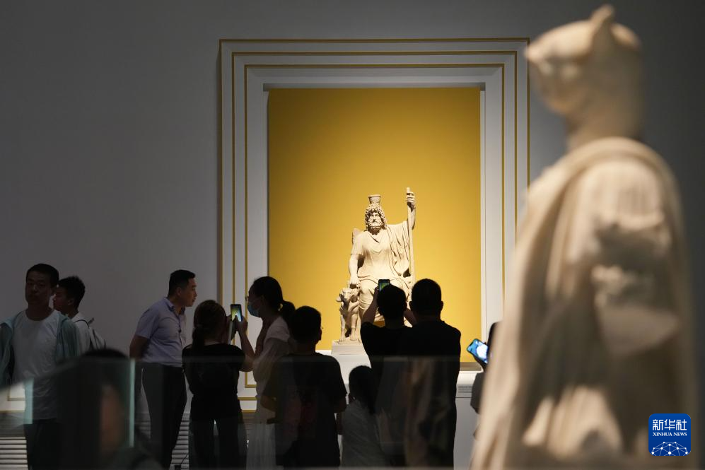 7月8日,参观者在湖南博物院“遇见庞贝:永恒之城”展览拍摄维纳斯女神雕塑。