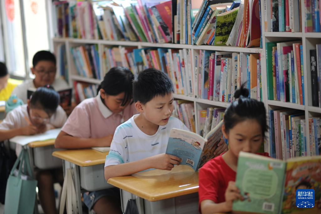 7月17日,小朋友在山东省高密市经济开发区冯家庄村宝德书院阅读。