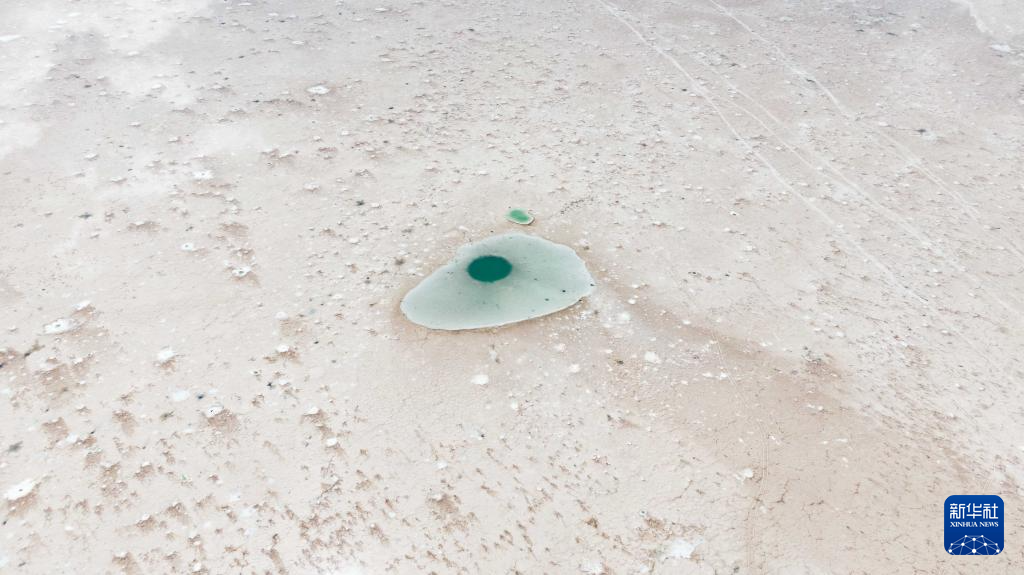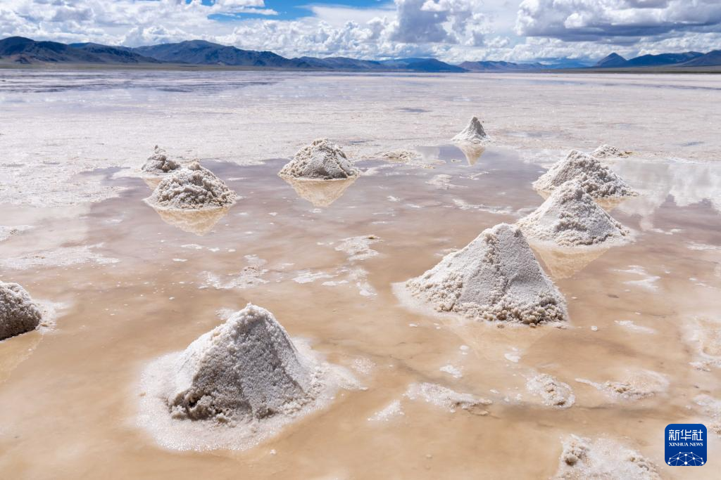 7月20日拍摄的位于西藏阿里地区革吉县的盐湖一景(无人机照片)。