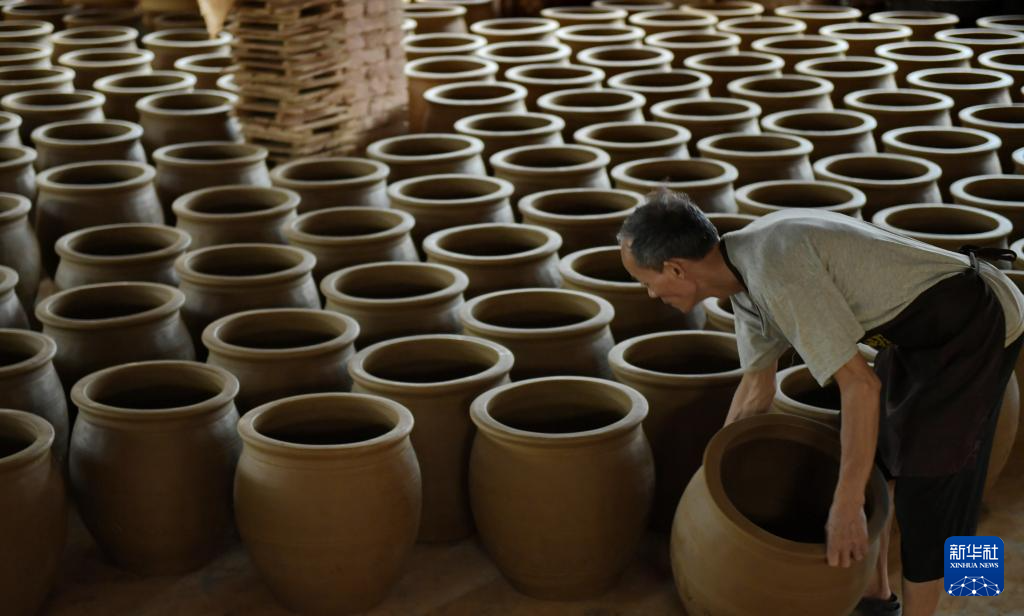 8月11日,在四川省彭州市桂花镇桂花龙窑,陶艺制作人员在赶制陶器。
