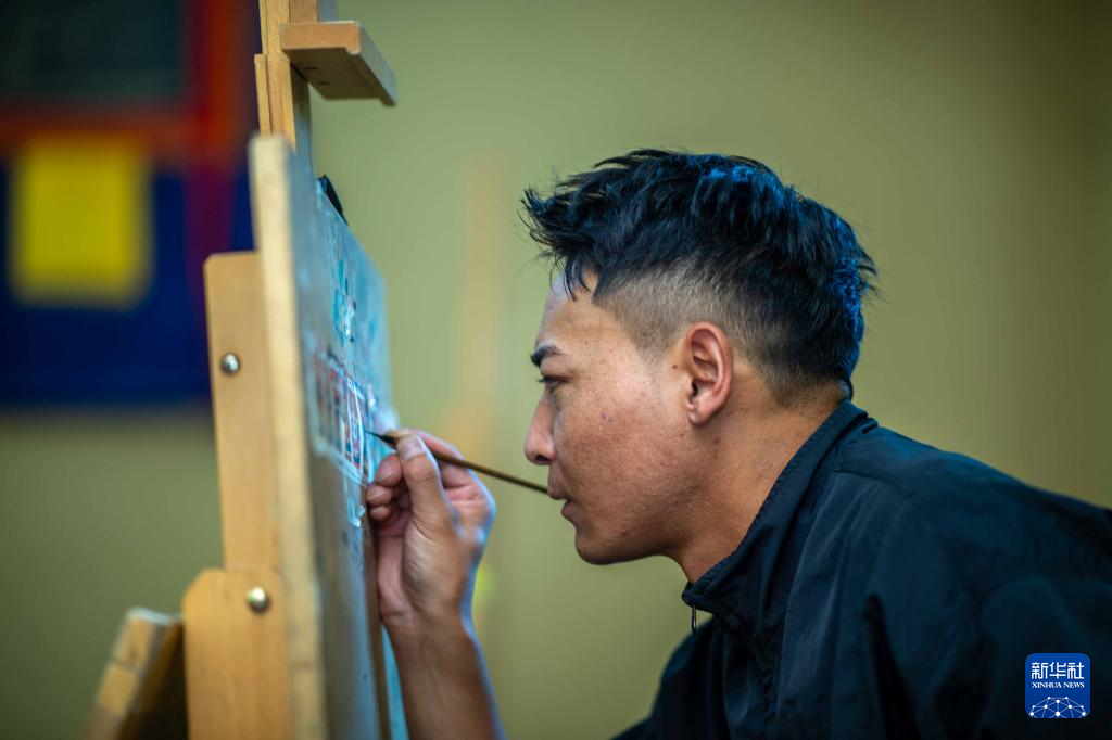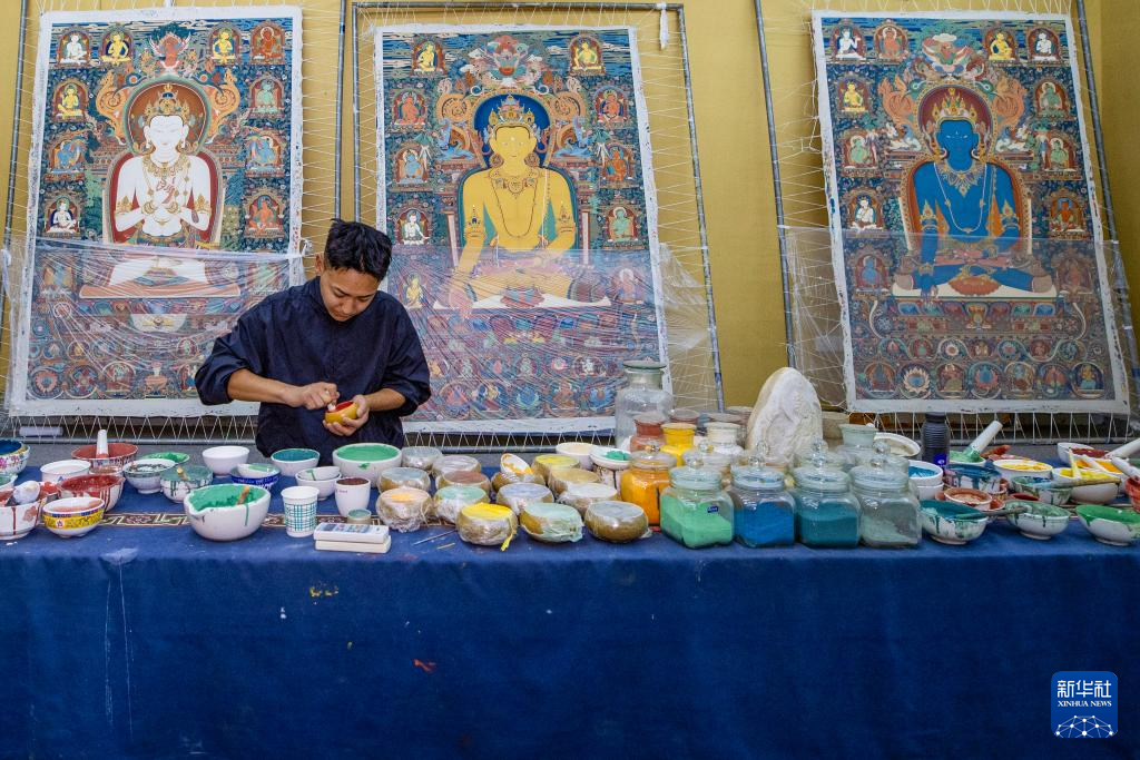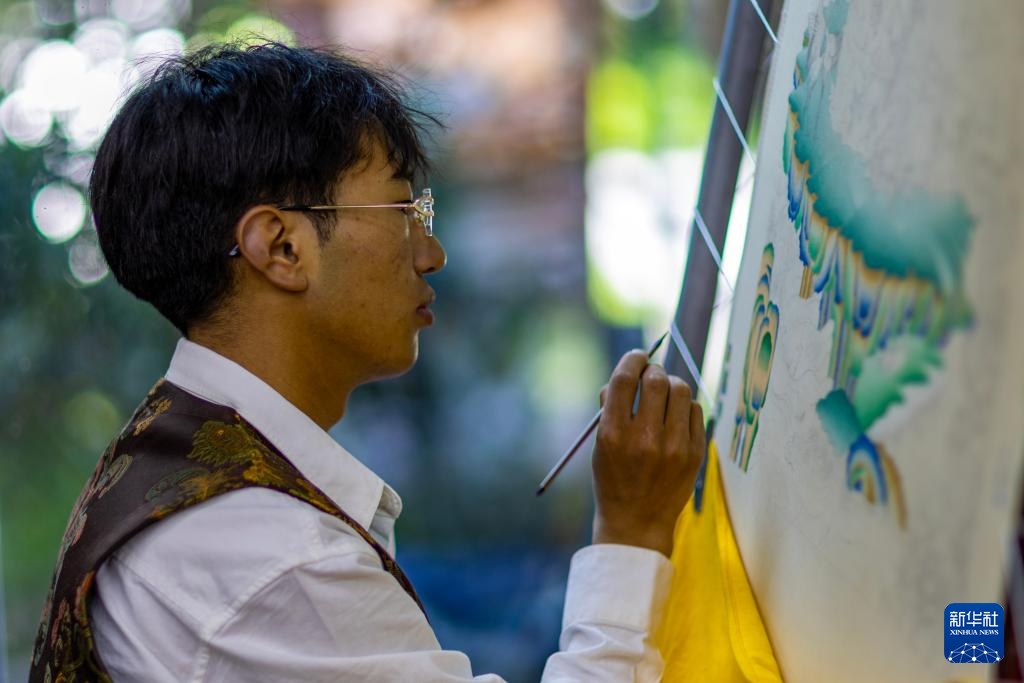 8月6日,一名画师在绘制唐卡。藏族唐卡入选国家级非物质文化遗产代表性项目名录。