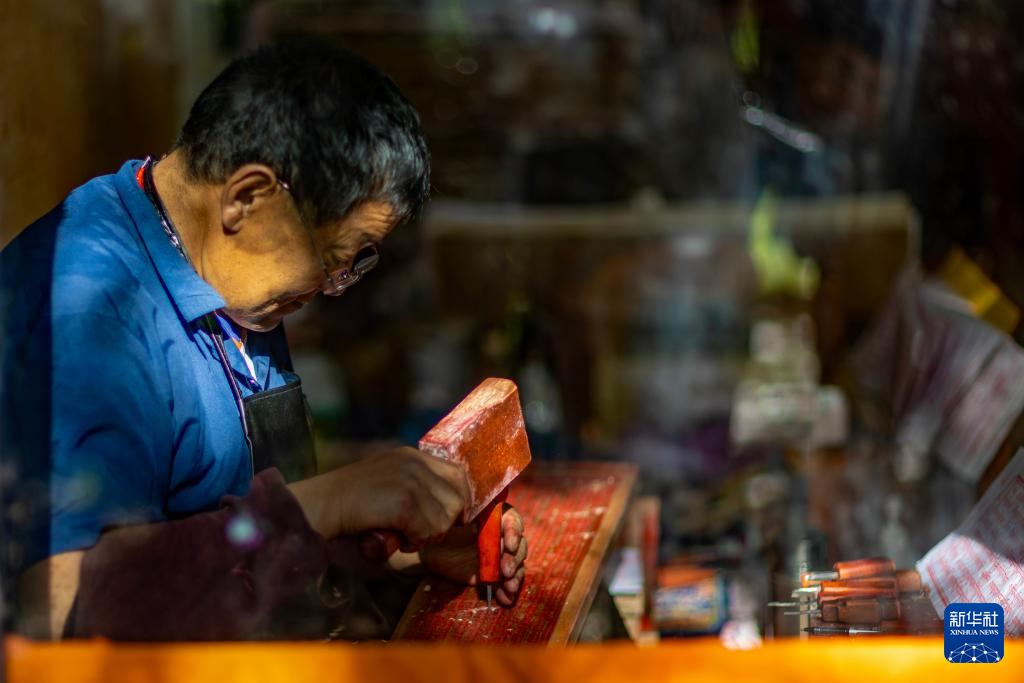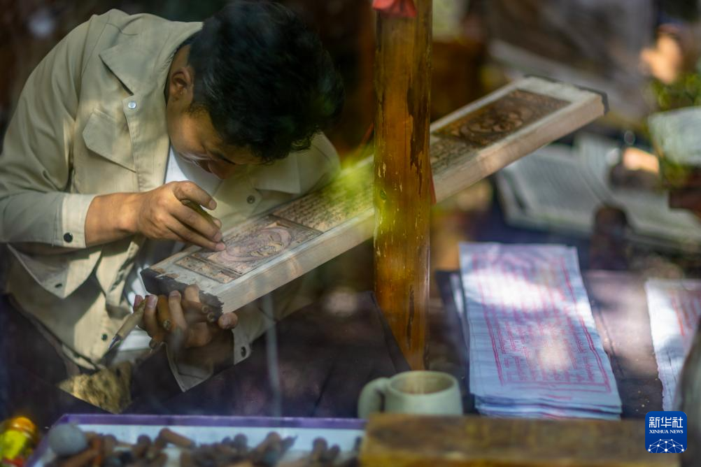8月6日,一名雕刻师在雕刻中。西藏雪巴康雕版印刷制作技艺入选西藏自治区级非物质文化遗产代表性项目名录。
