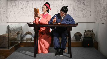 8月26日,在河南省洛阳市汝阳县人民文化馆,剪纸艺人展示七夕主题剪纸作品。