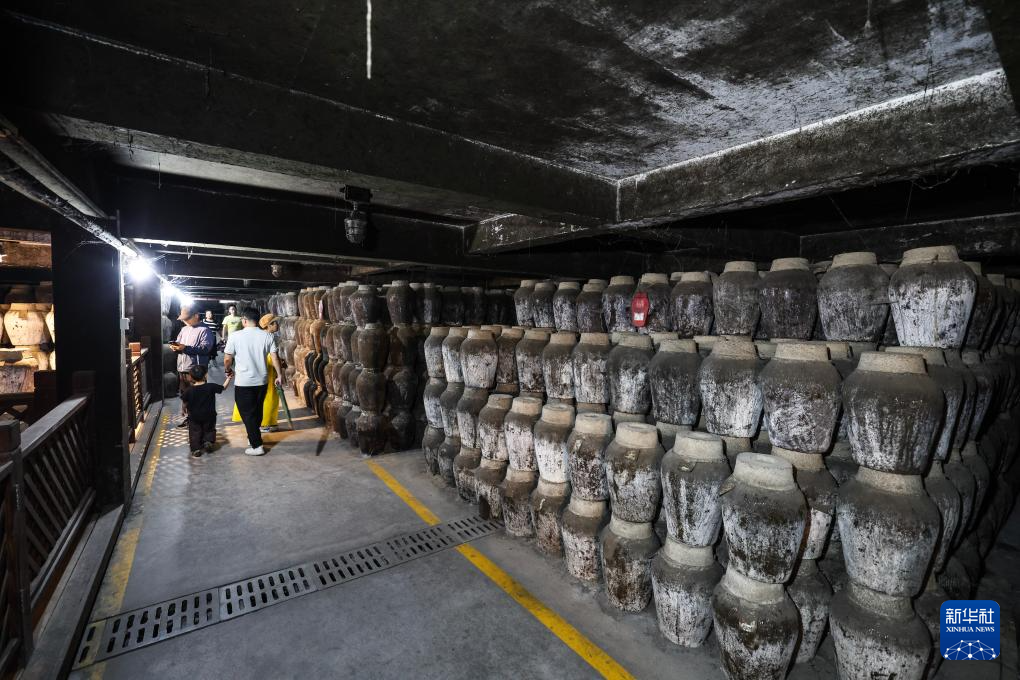 9月20日,游客在沈荡镇的中华老字号企业海盐沈荡酿造有限公司地下酒窖游览。