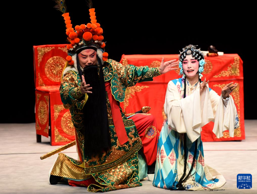 9月23日,演员在奥地利维也纳表演扬剧《吴汉三杀》。